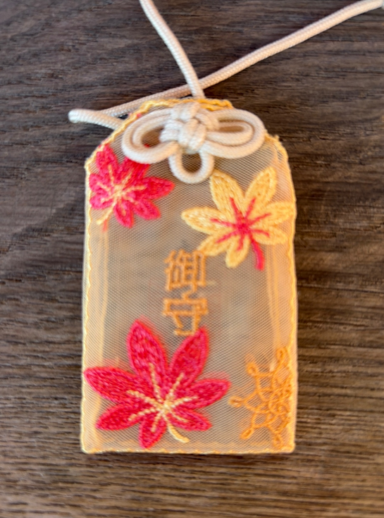 신사는 작은 편이고 어느 절에나 그렇듯 굿즈를 판다. 굿즈라는 말이 맞나 모르겠으나 귀여운 가을 부적을 팔길래 구입. 이렇게 주렁주렁 부적을 달고 다니는 나,,,