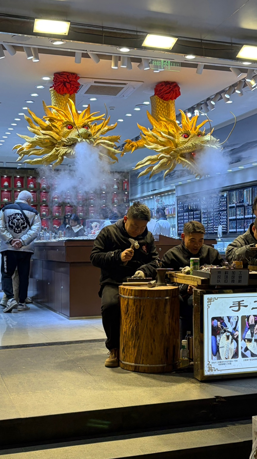 보석상 앞도 연말이라 바글바글. 이 때가 크리스마스 즈음이었어서 진짜 사람 드글드글이었다. 중국 얼마나 금 좋아하는교,, 우리나라에 들어온 보석 느낌이 아니라 그냥 샛노란 느낌으로다가.